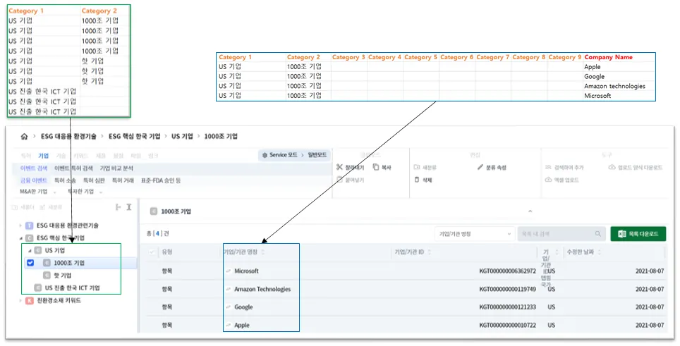 PatentPia가 제공하는 주제별 기업군은 크게 4가지 종류가 있습니다. i) 상장 기업군, ii) 기업 집단을 구성하는 계열사, iii) 테마별 기업군 iv) 이벤트 발생 기업군이 있습니다. 비교 대상이 되는 기업군의 종류는 지속적으로 확대됩니다. 특히, 지배 구조나 공급망, ETF 등을 구성하는 기업군, 각종 주제/테마/목적별 기업군, 글로벌 마켓 리더의 M&A/투자와 관련된 기업 등이 제공될 예정입니다.